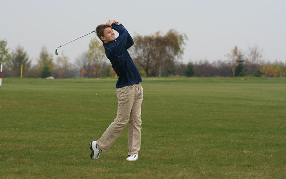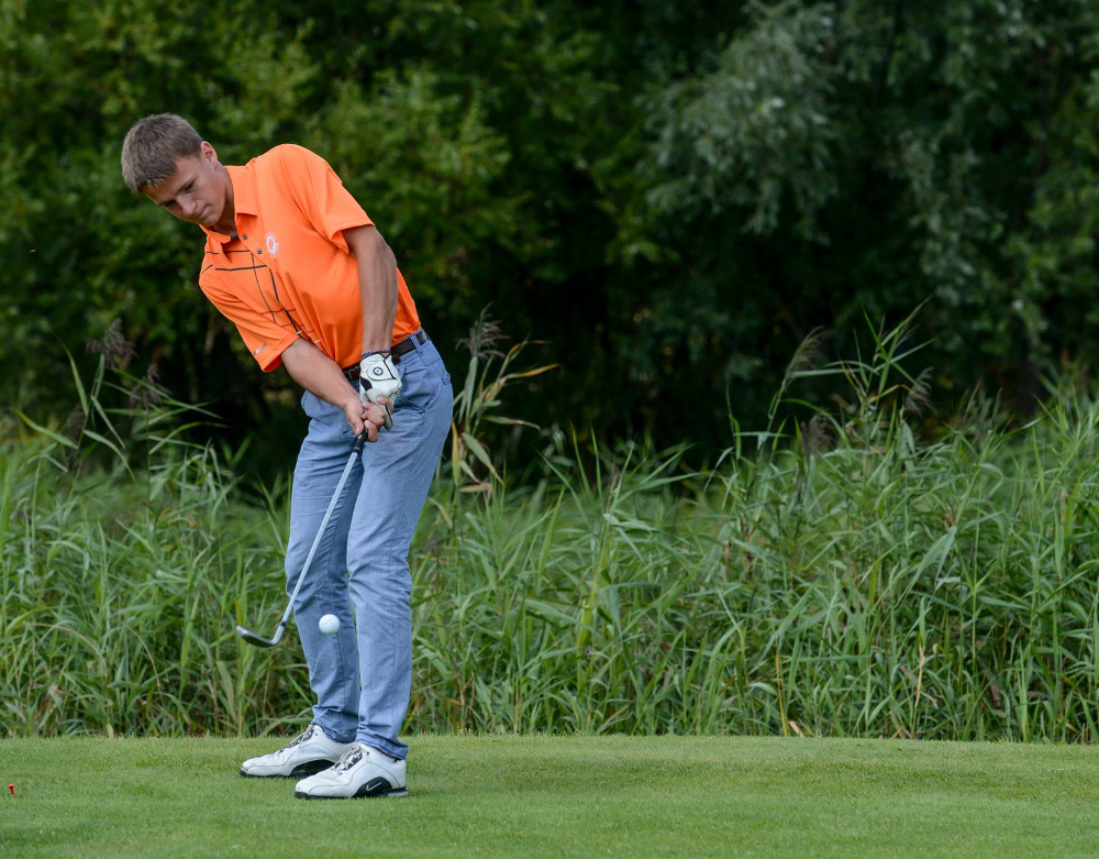 I wtedy nastąpił przełom! Kilka miesięcy minęło, przyszedł maj i ogólnopolski dzień golfa. Dzień, w którym na wszystkich polach golfowych w Polsce KAŻDY może przyjść i całkowicie za darmo spróbować swoich sił w tej pięknej dyscyplinie. Zadanie miałem ułatwione, bo najbliższe i nawiasem mówiąc najstarsze w Polsce pole golfowe znajduje się dwa kilometry od mojego domu rodzinnego w Rajszewie pod Warszawą. Wybrałem się wraz z rodzicami i spróbowałem. Od pierwszego udanego zamachu i tego uczucia, że dobrze uderzasz piłkę (a uwierzcie mi, to nie jest takie łatwe jak się wydaje) zakochałem się! Chciałem tylko więcej i więcej! Zmieniałem kije, żeby uderzać dalej! Spędziłem resztę dnia na driving range’u1 bo tak się wciągnąłem. Dostrzegł mnie wtedy mój obecny trener i bardzo dobry przyjaciel, który od razu zachęcił mnie do zapisania się na kurs na zieloną kartę2. Po udanym szkoleniu, zważywszy na moje chęci i dobre przygotowanie fizyczne, trener od razu zachęcił mnie do dalszych treningów. W dużym skrócie spędziłem na polu golfowym wiele miesięcy poświęcając się rozwojowi sylwetki, poprawnej postawie, dynamice swingu3 i obniżaniu handicapu4 – na byciu lepszym graczem.